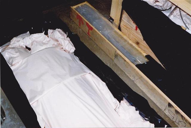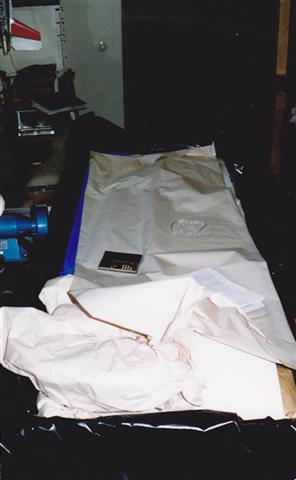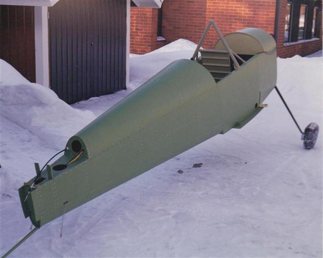 Front of the fuselage upside down. You can see at the place of the main wing spar small pieces of wood.