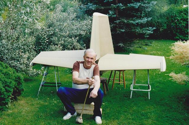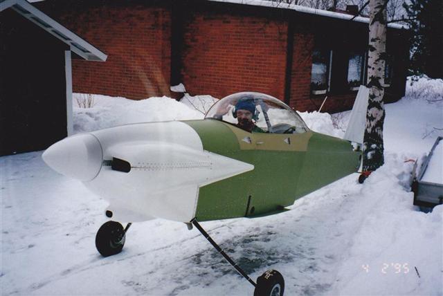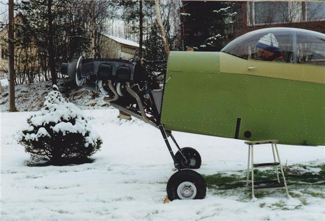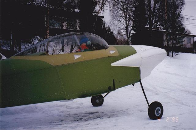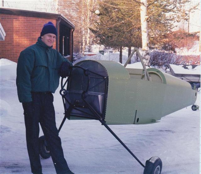 After the skin assemply at the bottom section of the fuselage was finnished, a got to my feets for the very first time.