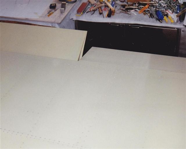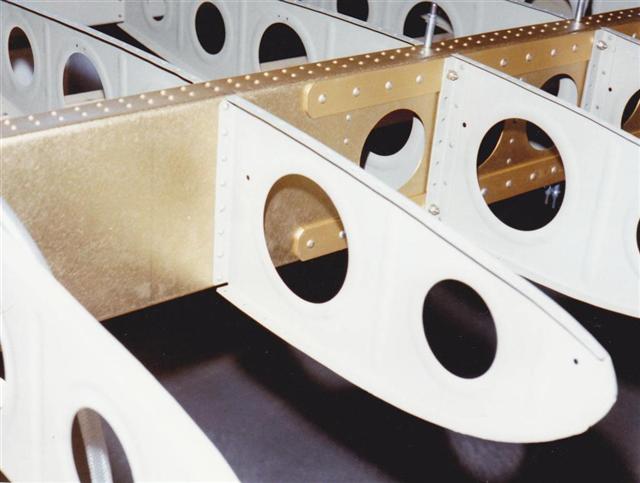 Riveted parts of wing with primer paint