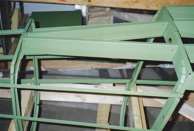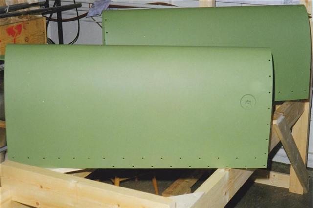 Parts from tail section riveted and with primer paint